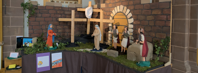 Die klassische Weihnachtskrippe kennen die meisten Menschen. Der Begriff „Osterkrippe“ ist dagegen beim ersten Hören eher befremdlich. Dahinter verbirgt sich die Darstellung des Ostergeschehens rund um die Auferstehung Jesu durch verschiedene Figuren.